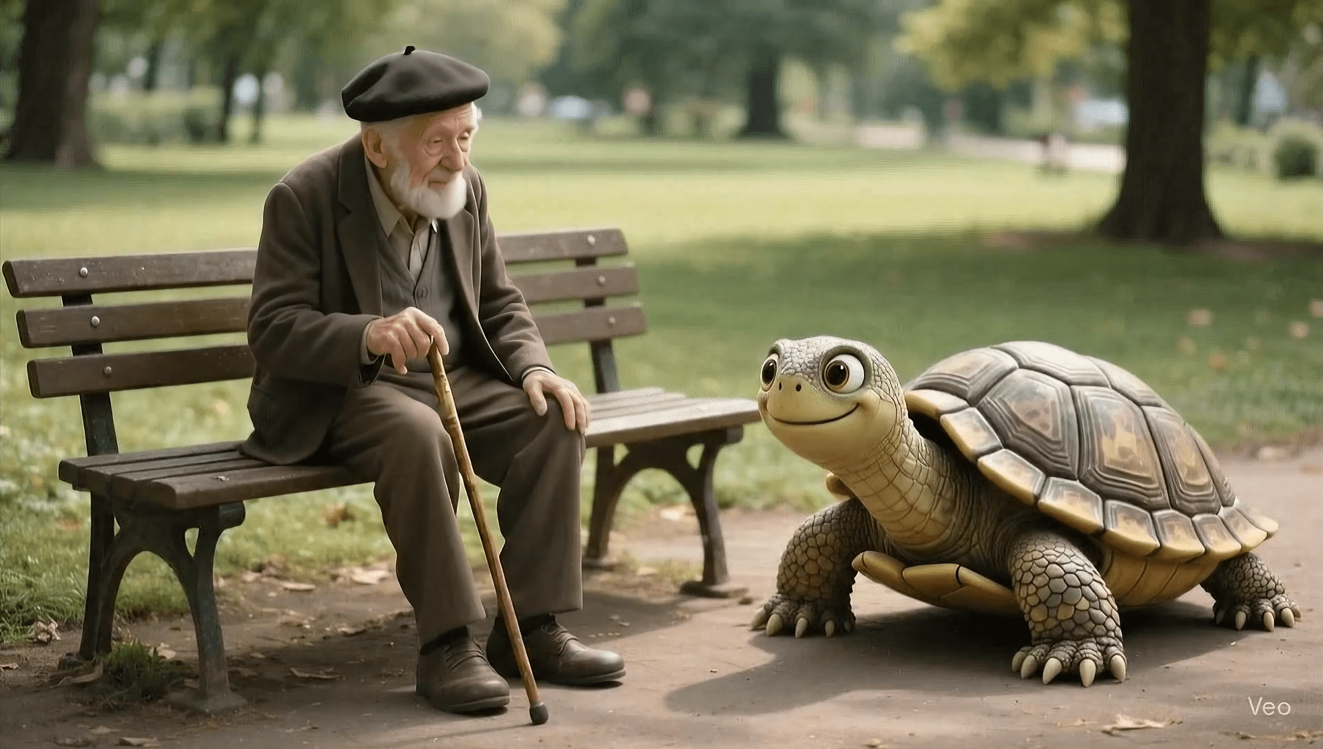 Dos amigos ancianos se encuentran en un parque: